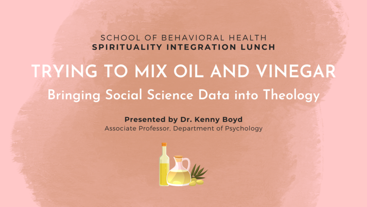 Dr. Kenny Boyd, Associate Professor in the Department of Psychology, will present "Trying to Mix Oil and Vinegar: Bringing Social Science Data into Theology" on November 28 at noon!